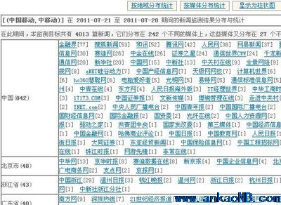 5、媒介監(jiān)測:對公司產(chǎn)品、服務(wù)、形象等在媒介的傳播通路進行統(tǒng)計分析,找出傳播量大的媒介,以及媒體傳播中涉及的熱門人物(媒體記者、熱心網(wǎng)友、意見領(lǐng)袖等)