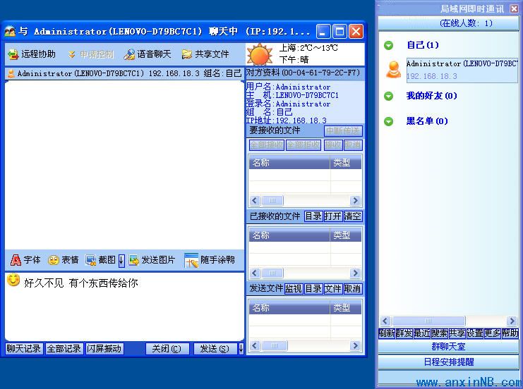 該軟件是一款局域網(wǎng)內即時通信軟件, 基于 TCP/IP(UDP)。