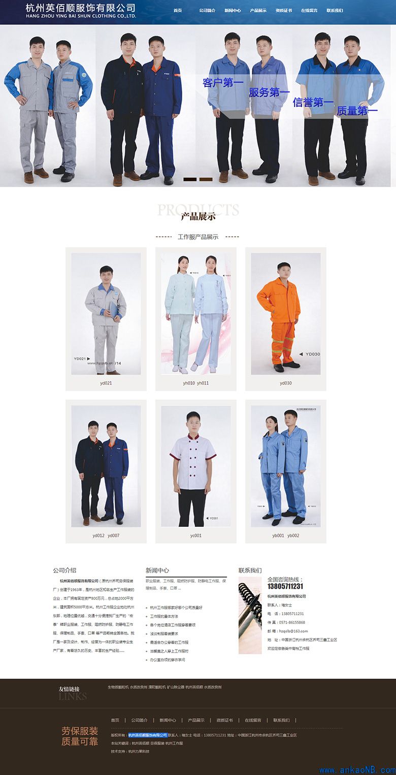 杭州英佰順服飾有限公司(原杭州喬司勞保服裝廠)http://www.hzybsfs.com/創(chuàng)建于1963年,是杭州地區(qū)知名生產(chǎn)職業(yè)服裝的企業(yè),本廠擁有固定資產(chǎn)800萬元,總占地2000平方米,建筑面積5000平方米。杭州工作服企業(yè)地處杭州東部,地理位置優(yōu)越,交通十分便捷。